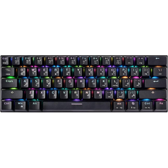 استمتع بإثارة الألعاب مع لوحة مفاتيح ألعاب ميكانيكية Motospeed SK62 RGB باللون الأسود بمفاتيح عربية حمراء. تم تصميم لوحة المفاتيح هذه المدمجة والمحمولة لرفع مستوى أداء الألعاب لديك وتوفير تجربة كتابة مريحة.